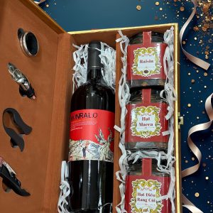 Vali quà tặng chai vang và hạt dinh dưỡng RV02 là món quà toát lên vẻ tinh tế – sang trọng, một sự hòa quyện đến từ hương vị, đồng thời mang trong mình thông điệp về sự sung túc, thịnh vượng và hạnh phúc.